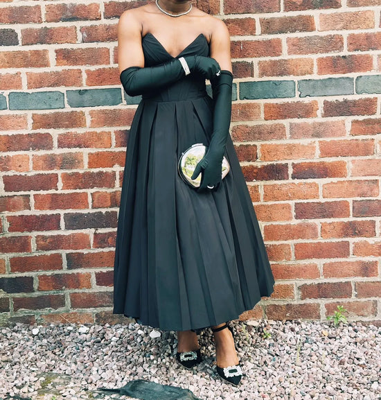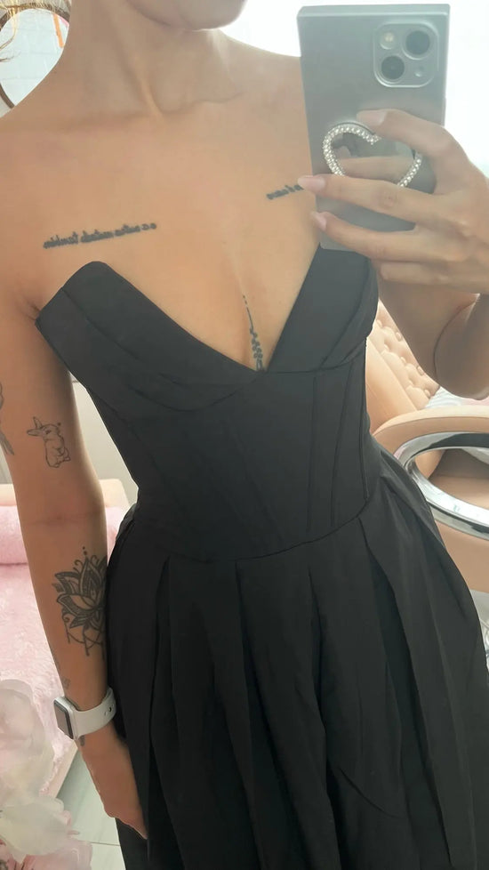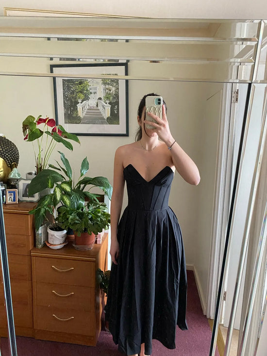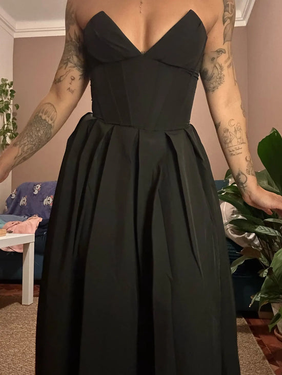 Laarni-klänningen är helt enkelt perfekt för dina speciella tillfällen den här säsongen. Feminin, chic och ikonisk. Den arkitektoniskt skulpterade bustier är perfekt utformad för att dra in midjan och kontrasteras av den fylliga, feminina, voluminösa kjolen.